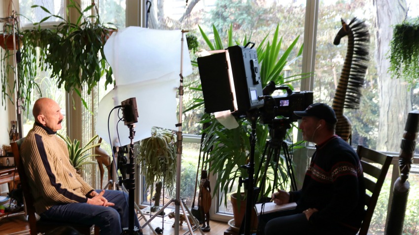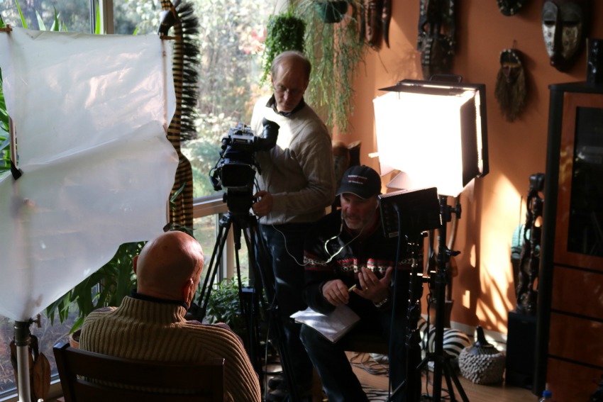 A: I wanted to hire a cameraman for this project, but they were all too expensive and I figured I was really only shooting interviews… point the camera, add a little light, and hit record. So, I did a lot of research, used Desktop Documentaries website [7-Day Documentary Crash Course], and talked with people I knew in the industry.